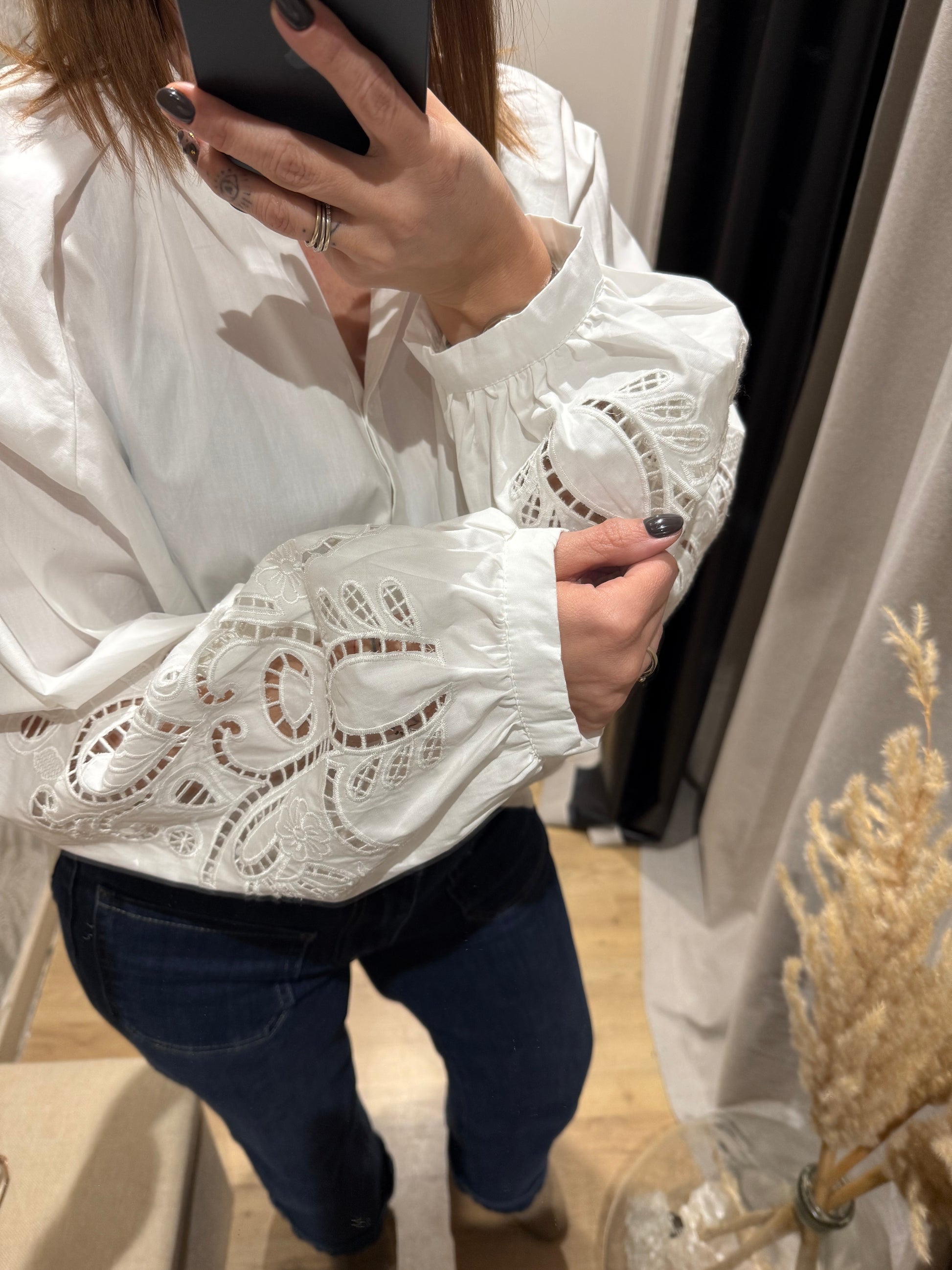 - Détails de broderies délicates sur les manches